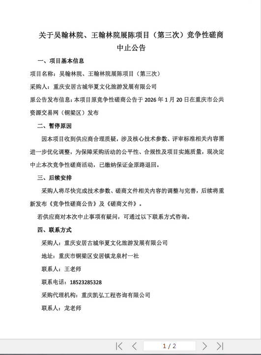 上一篇: 吴翰林院、王翰林院展陈项目(第三次)采购邀请书