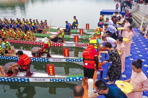 安居古城“水云龙”祭祀表演是安居古城独有的一种龙舞形式,安居的“水云龙”始终都保持着原生态的粗犷和质朴,这是一种信仰的力量,更是一份执着的坚守。安居“水云龙”造型古朴,玩舞时烟云缭绕,若隐若现,整条鲜艳的龙在云雾中穿梭,时而龙头钻档子;时而头尾齐钻。所经之处,人们用圣洁甘洌的泉水敬龙接福,浇泼龙身,祈求神龙赐福降恩。一路下去,整条街道就成了水的世界。