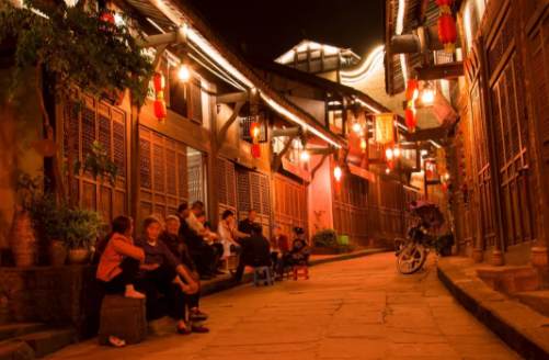 当黑夜与民俗融合在一起,似乎所有白天匆匆的脚步都凝固,伴着这份轻松愉悦的心情,让生活的快节奏融化在这夜色中。