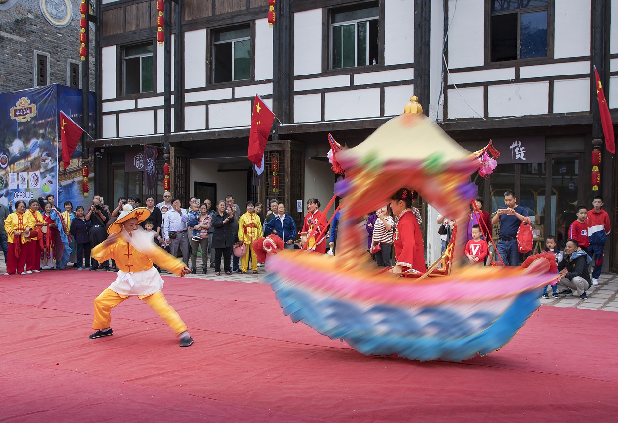 旱船,顾名思义就是在陆地上“开”的船。清末民初,在琼涪两江交汇的安居,每逢元宵节必能看到旱船满街行的场景。迈着有力的步伐,唱着有趣的号子,逗乐了一众行人。