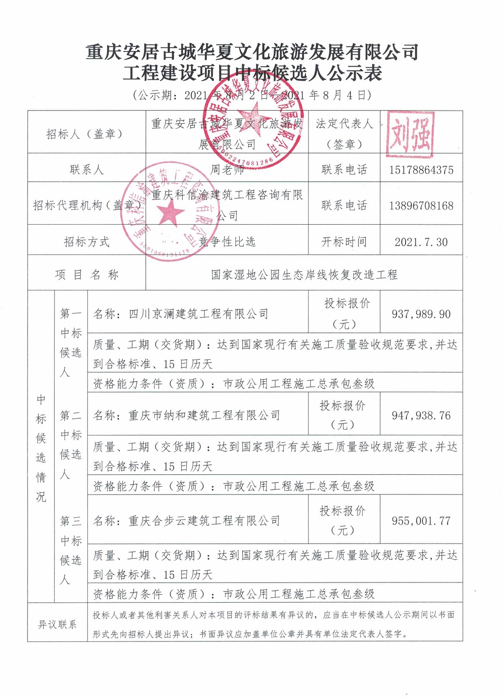 下一篇: 重庆安居古城华夏文旅公司-工程建设项目中标候选人公示表