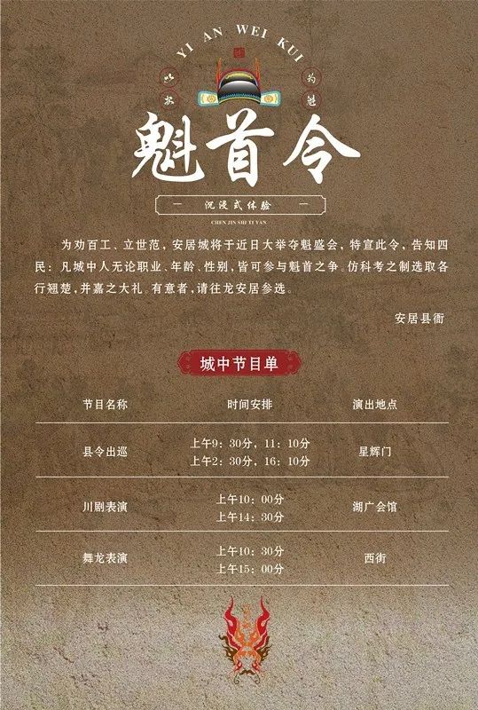 是一座集独特区位优势、悠久文化底蕴、丰富文物古迹、优美自然风光于一体的千年古城。《以安为魁》剧本运用了安居古城的历史文化脉络,使玩家通过游戏的方式,了解安居的当地文化、古城历史,让游客们“游有所乐、乐有所获”。