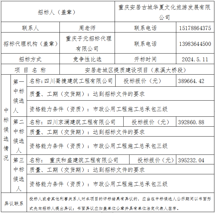 上一篇: 安居古村镇保护修缮工程(王翰林厢房)工程建设项目中标候选人公示表