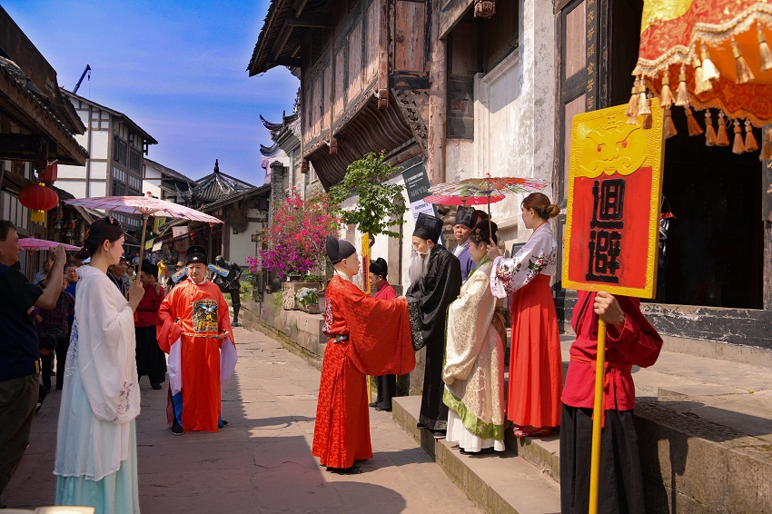 有着千年历史的安居古城是一个“看得见山,见得到水,记得住乡愁的地方”。在古城深厚的文化底蕴中,安居一门四翰林三进士、祖孙两翰林等书香文化是广为传唱的佳话,因此安居古城以进士、翰林文化,以翰林锦还乡为故事主线,开展汉风古韵为主题的系列活动,整个活动在安居深厚的历史文化基础上,融入传统元素,给来到安居的四方宾客带去了一场别具一格的穿越体验